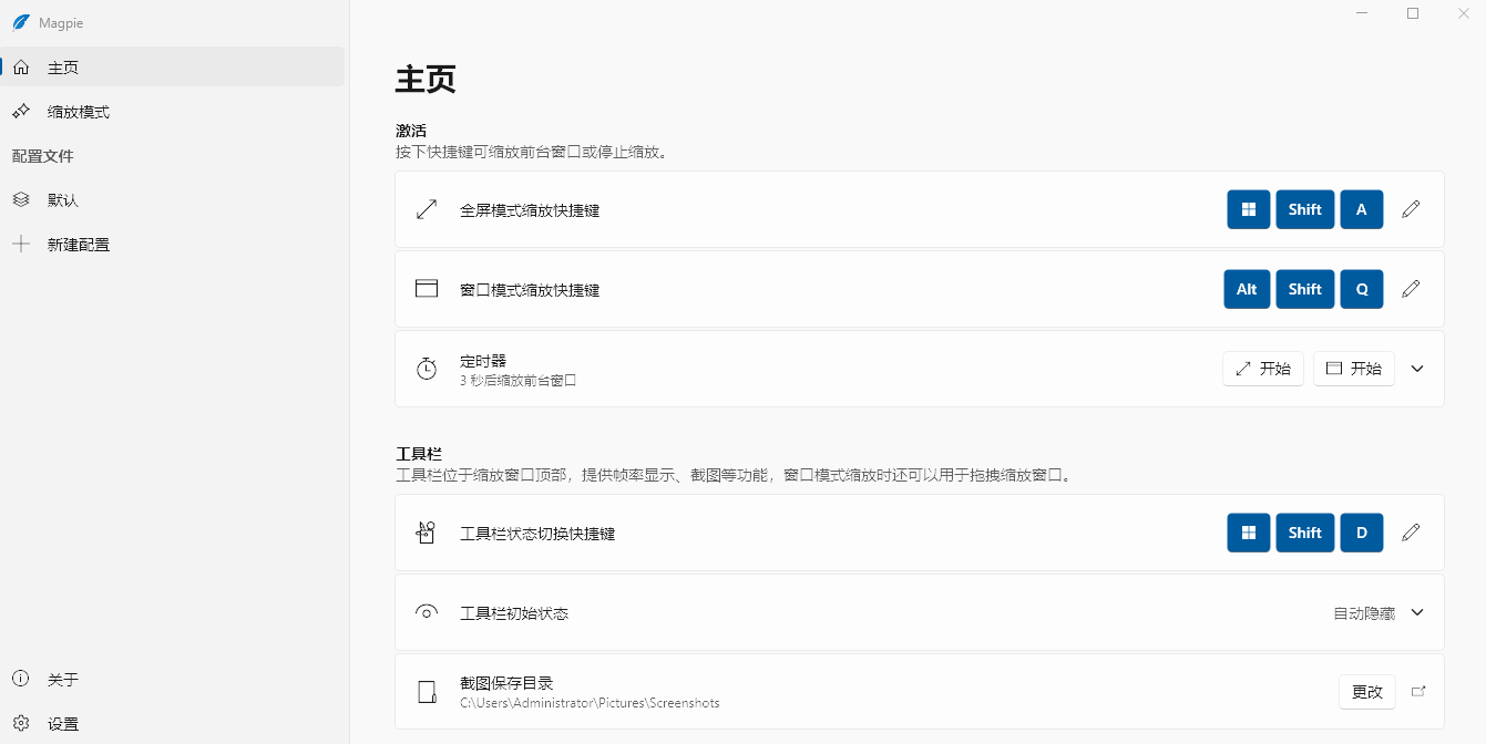 支持全屏缩放与窗口化缩放两种核心模式,可通过自定义快捷键(默认 Alt+Shift+A 全屏缩放、Alt+Shift+Q 窗口缩放)快速激活,还支持 3 秒延迟缩放功能,操作更灵活。